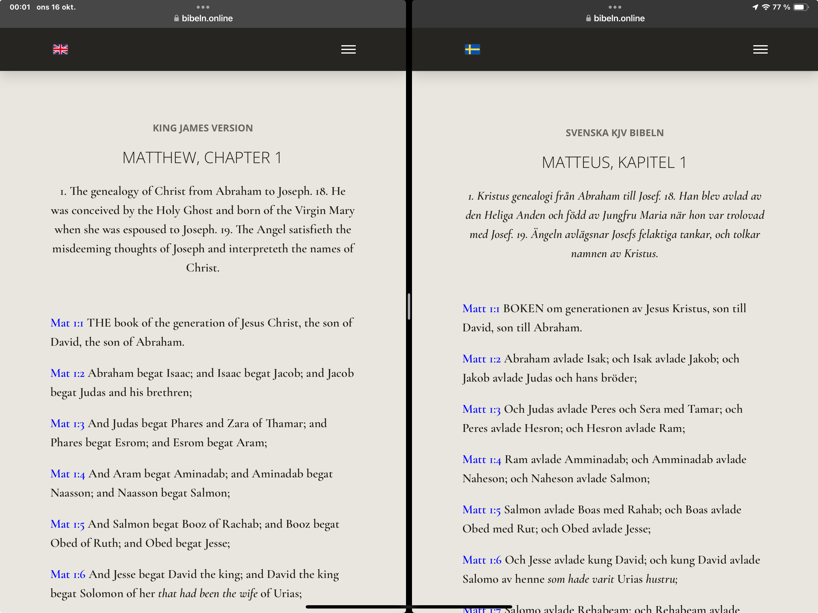 Vi ser fram emot att hjälpa dig på din digitala resa att utforska Guds ord, tillgängligt för dig när du vill, via webbläsaren som t.ex. Chrome, Safari eller Mozilla Firefox. Läs den Heliga Bibeln online och upplev sanningsenliga översättningar från den korrekta linjen av manuskript.